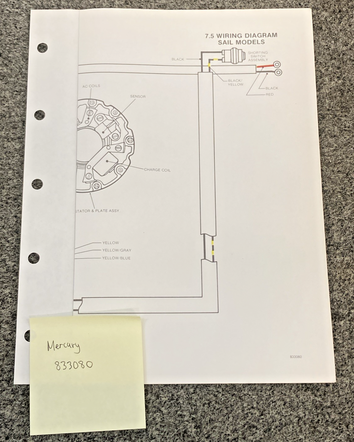 NEW REPLACES MERCURY 833080 7.5 WIRING DIAGRAM SAIL MODELS