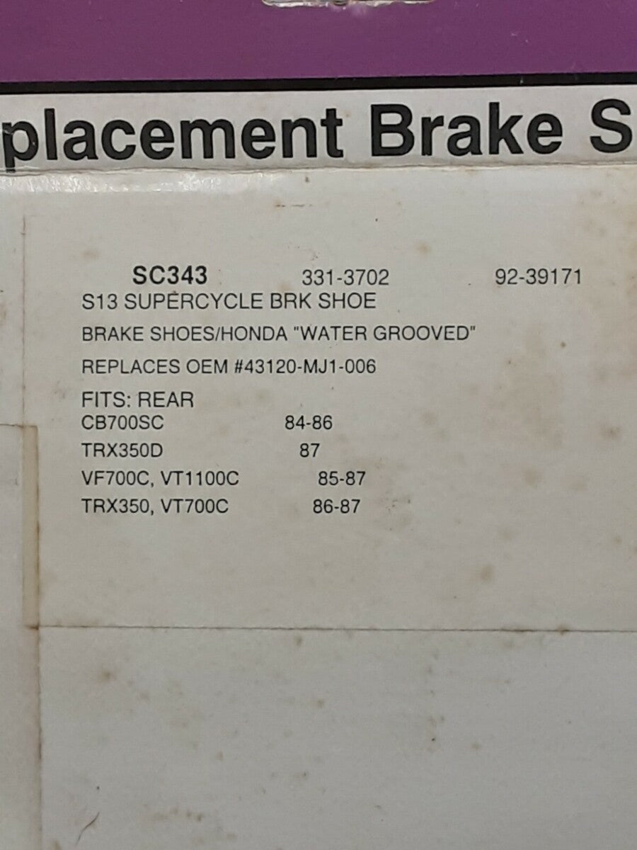 NEW SUPER CYCLE SC343 BRAKE SHOES HONDA CB700 TRX350 VF700 VT1100