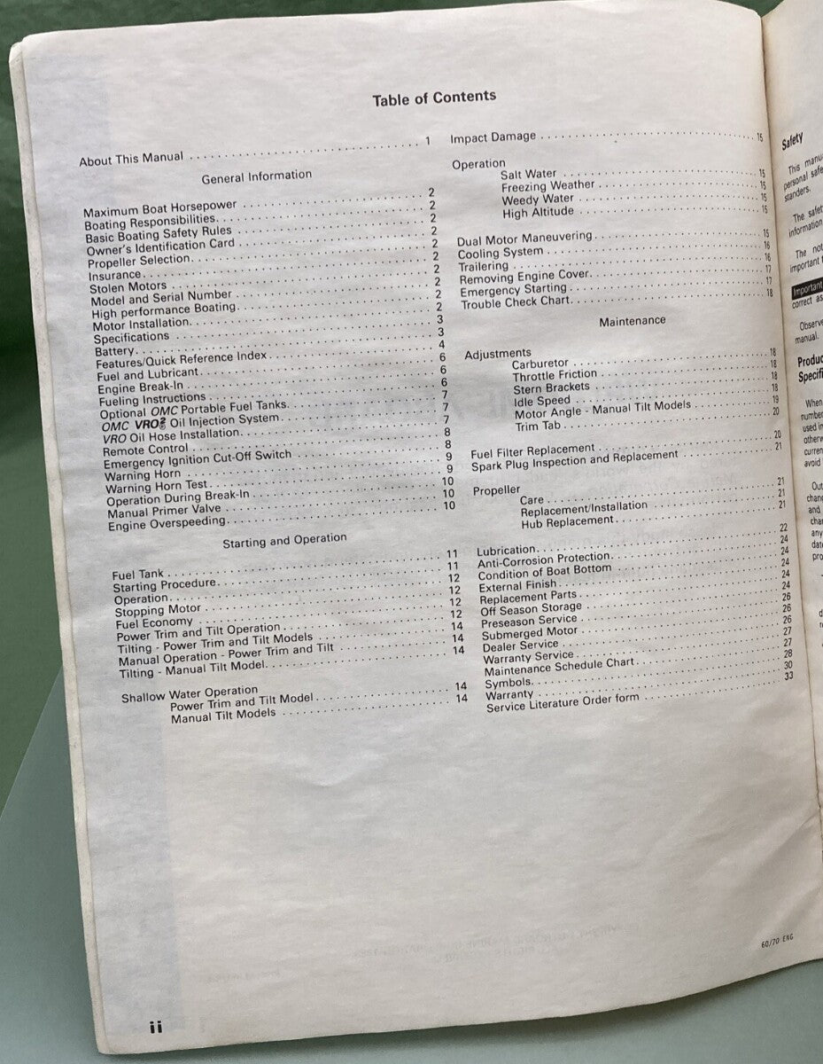 OMC EVINRUDE 211198 OWNER'S MANUAL MODELS 60/70 ENG SPAN FREN PORT 1988