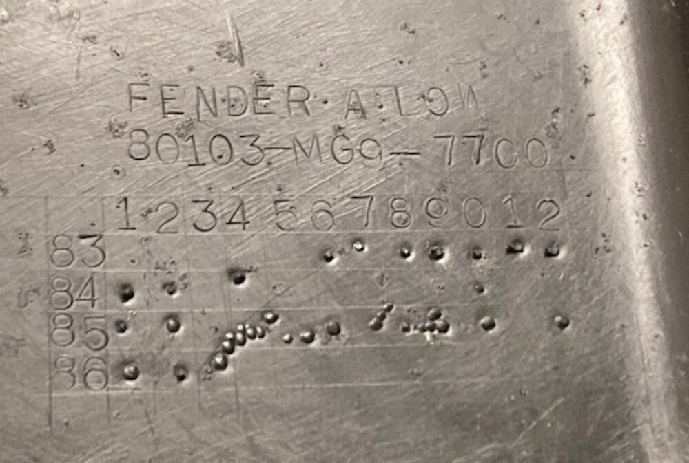 Replaces Honda 80103-MG9-7700 Lower Fender